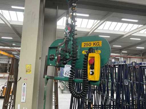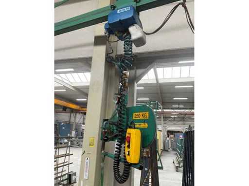 Voorzien van: (1x) Abus elektrische kettingtakel, (1x) Muyen Vacuümheffer / zuigplaat, 250kg. Bouwjaar: 1999.
