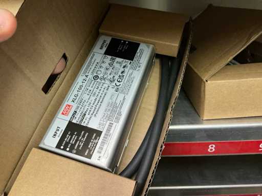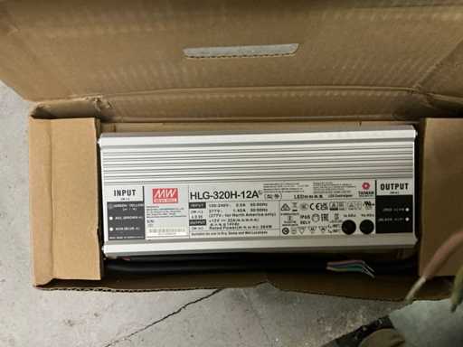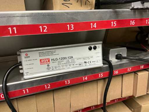 In diverse,types waaronder XLG-150-12-A, XLG-100-12-A, XLG-75-12-A, LPF-25-12, HLG-185H, HLG-320H, HLG-120H, HLG-240H, LPF-40-12, LPV-150-12, compleet met partij diverse Wagoklemmen en connectors 3M, inclusief rek