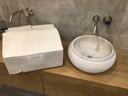 Natuursteen Marmer Grijs Wastafel 40,6x15 cm 2 stuks
