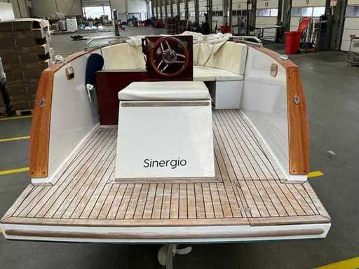 Naam; Sinergio Motorserienummer: 657 903 -DP6E1L 90008 Maximaal vermogen (ISO 8665): 6,0 kW Accumodel: Epropulsion E175 Batterijcapaciteit: 48V / 175Ah Maximum aantal passagiers (PB): 6 Vracht en uitrusting (Kg): 40,00 Kg Maximaal gewicht passagiers + effecten (Kg): 570,00 Kg Maximaal gewicht basisuitrusting (Kg): 40,00 kg