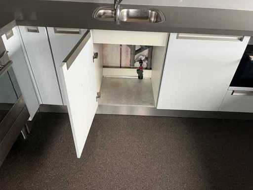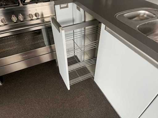 Conditie: gebruikt; afmetingen keuken (fornuis-spoelbak-tussenstuk-schiereiland) circa 205x376x269x195 cm; reeds gedemonteerd en ingepakt op pallets (afstapelen, omruilen of statiegeld per pallet); pallets zijn niet inbegrepen; statiegeld betalen bij afhalen, of pallets afstapelen; werkblad niet ingepakt op pallets (25-2DE-02912)