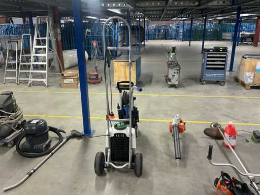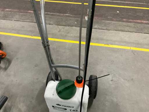 Inclusief steekwagen met elektrische onkruidbestrijdingsspuit op accu, zonder laadsnoer.
