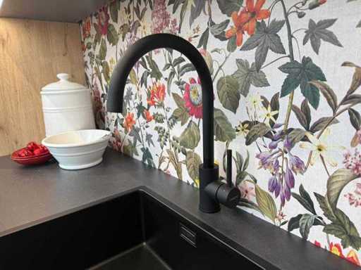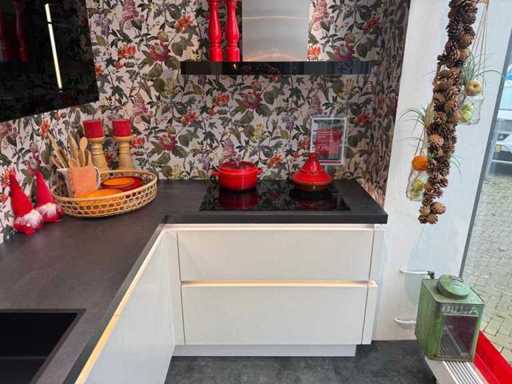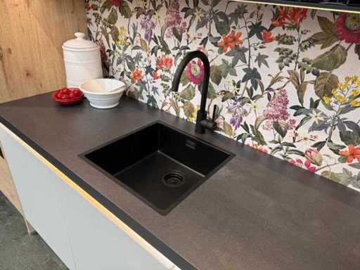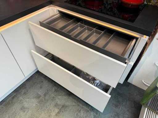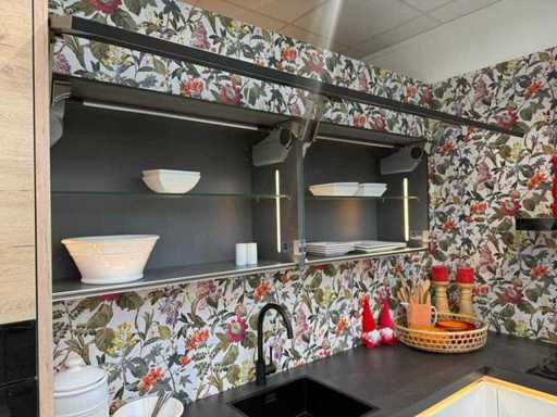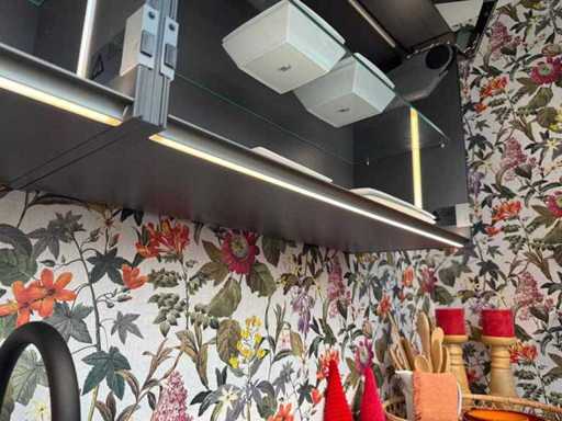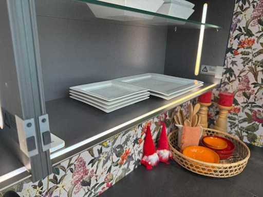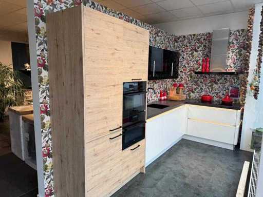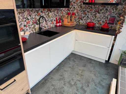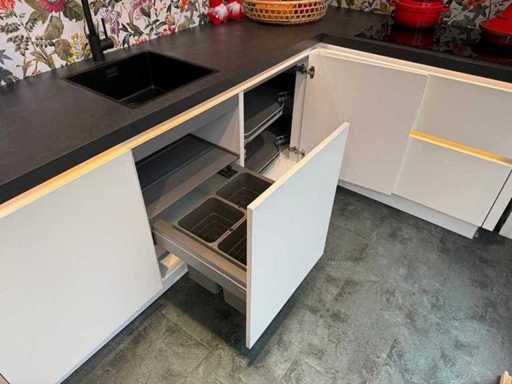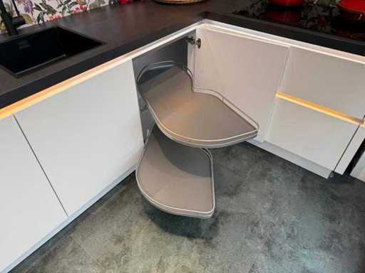 Afmetingen linkerdeel circa 370x60x220 cm; afmetingen rechterdeel circa 170x60x90 cm; reeds gedemonteerd en ingepakt op pallets. (afstapelen, omruilen of statiegeld per pallet); pallets zijn niet inbegrepen; statiegeld betalen bij afhalen, of pallets afstapelen; werkblad niet ingepakt op pallets (25-RKF-02554)