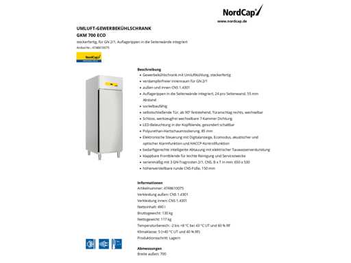 NORDCAP GKM 7CO ECO CONVECTIE COMMERCIËLE KOELKAST