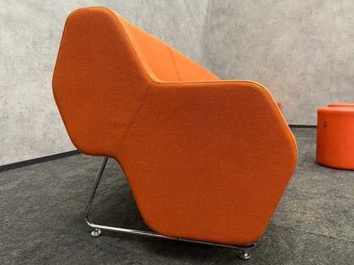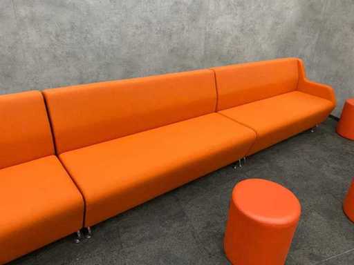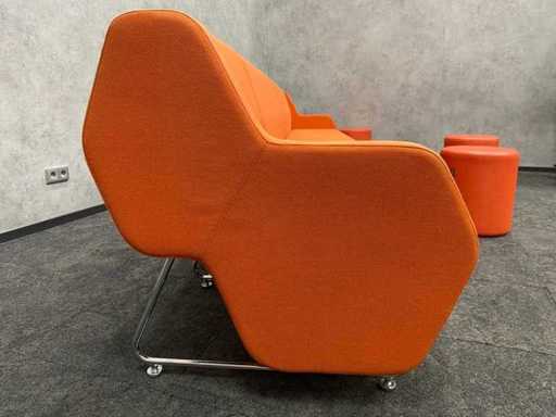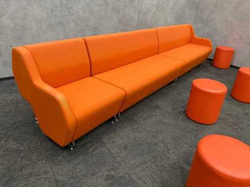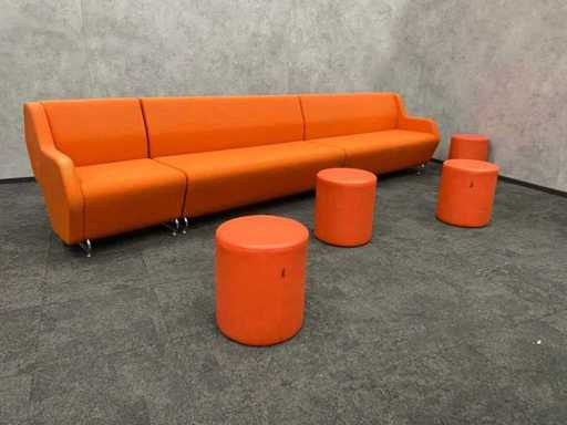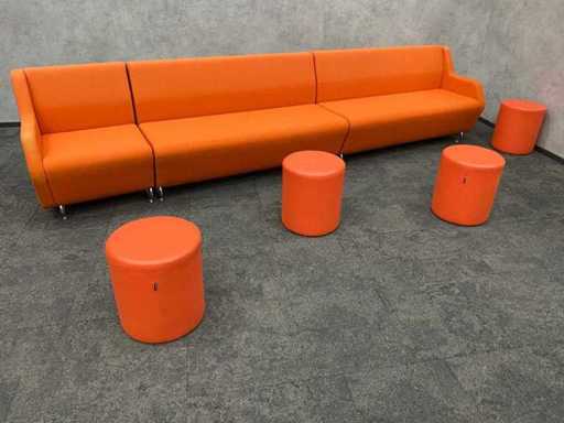 kavel bestaande uit 1x Nowystyle Hexa design sofa. Afm. ca. hxbxd 86x380x80 cm. zithoogte ca. 46 cm. ---- 4x Robos hocker. hoogte ca. 44 cm. en diameter ca. 40 cm.
