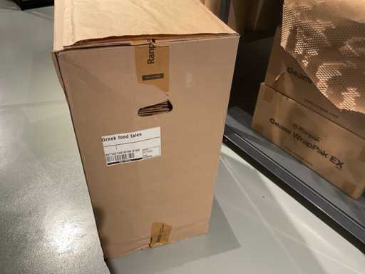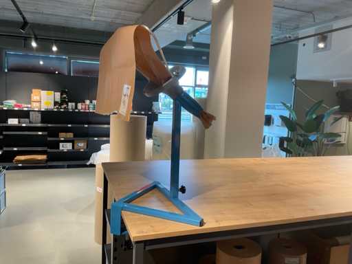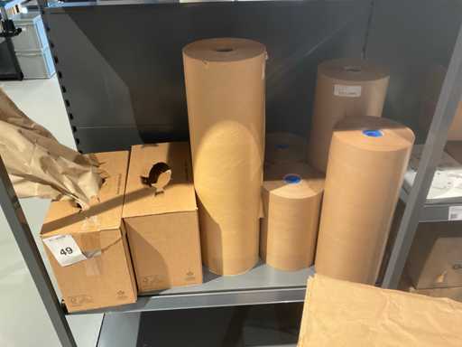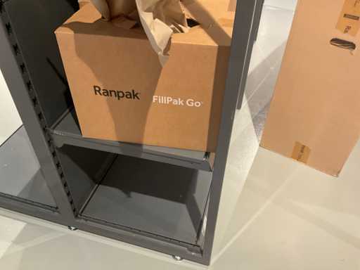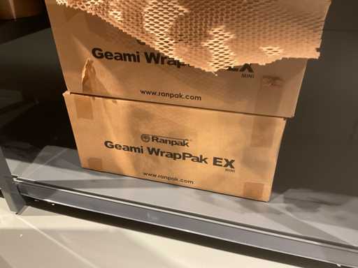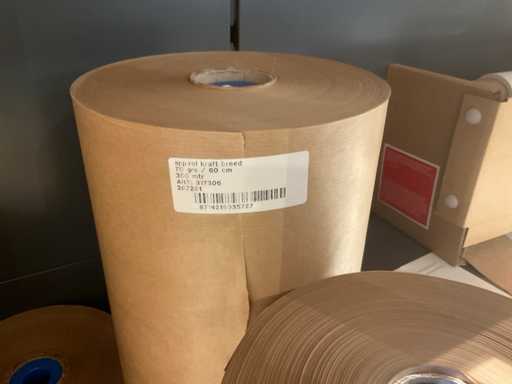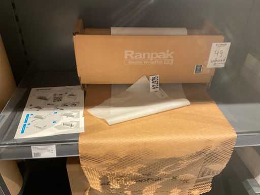 Diverse papieren verpakking opvulmateriaal o.a. Ranpak Geami WrapPak, rollen papier in diverse breedtes, Ranpak FillPack Go en trechter.