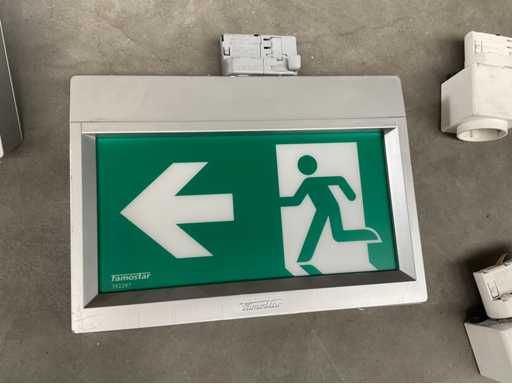 Bestaande uit 2x 3 meter rails, 2x 2 meter rails, 1x Famo star noodverlichting uitgang bord, 2x Famostar velo VS va-2 noodverlichting led spots, 1x power gear gezekerde stopcontact, 18 stuks led spots 4000 lumen en bevestiging kabels. Set bevat geen connectoren