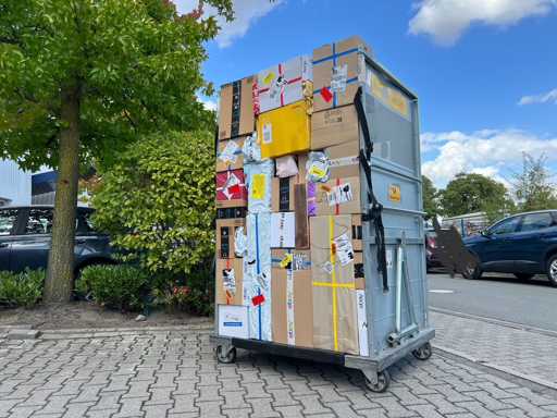 1 palletbox met inhoud: minimaal 80 verpakkingen / minimaal 80 stuks, afmetingen 120 x 80 Europlatette (L/W) De hoogte varieert afhankelijk van de grootte van de pakketten, gewicht: ca. van 50 tot 150 kg, inclusief: EuroPallet.
