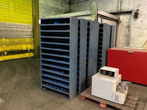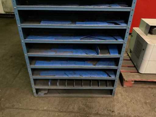 7 metalen kasten met verdeelschotten.