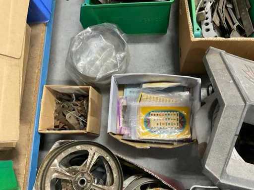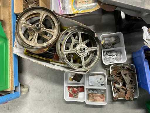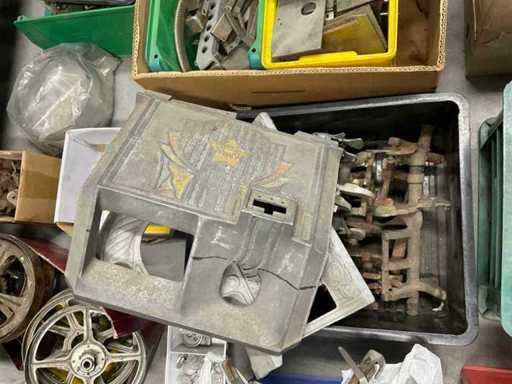 Onderdelen voornamelijk van Mills, maar ook diverse andere merken. Geldbakjes, wind-up tandwielen, jackpot, fruitwielen, frontjes, stickers.
