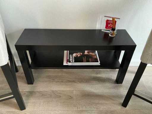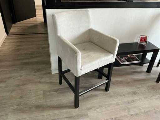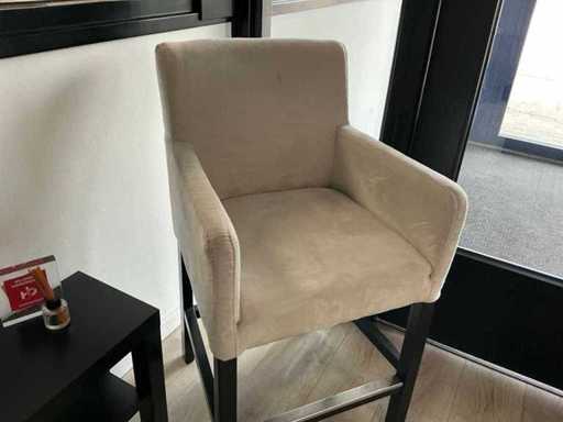 2 barstoelen met stoffen bekleding, 1 wandtafel