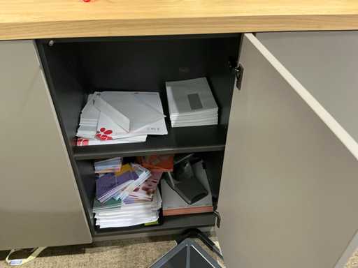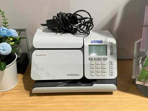 Voorzien van 2 Luxy bureaustoelen, Dymo pakketweegschaal, Quadient IS-200 frankeermachine. Met inhoud van de opbergkast