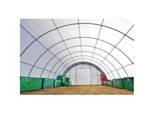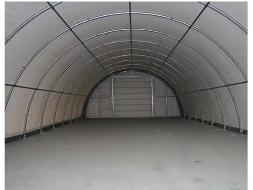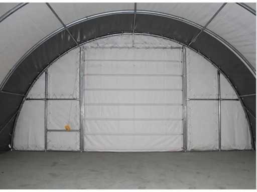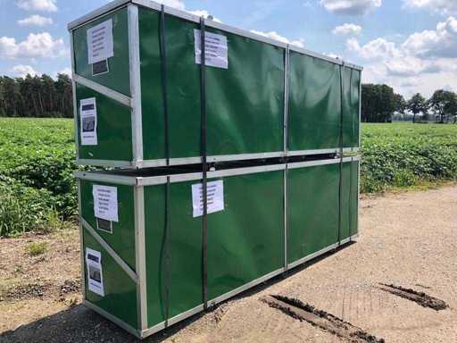 met oprolbare deur (maat: 4 x 4,5 mtr) verpakt in 2 ijzeren kratten.