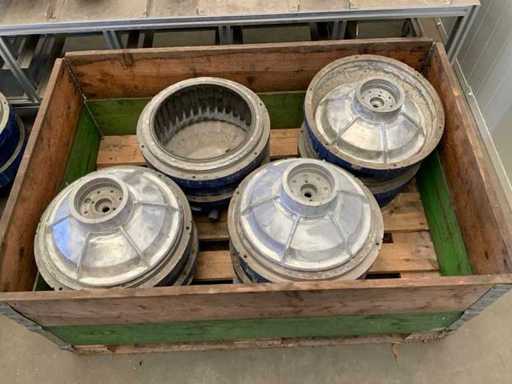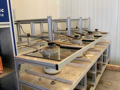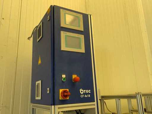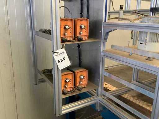 voorzien van 4 ontbraam / polijsttrommels op motor, vermogen: 1 KW, 4 ProMinent beta/4 doseerpompjes, 2 SIEMENS SIMATIC Toch operator panelen op aluminium frame