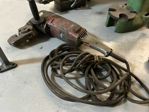 Voorzien van: Afkanter, Magnetische boorhouder, bandschuurmachine zonder motor, handpers, 3mm plaatschaar, takel, 2x dompelpomp, 5x electromotor