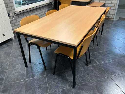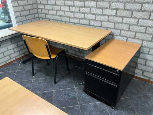 1X bureau 160x80 cm, 1x ladeblok, 1x tafel 200x100 cm, 7x stoel