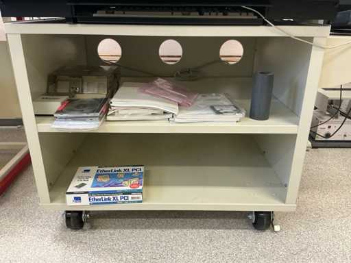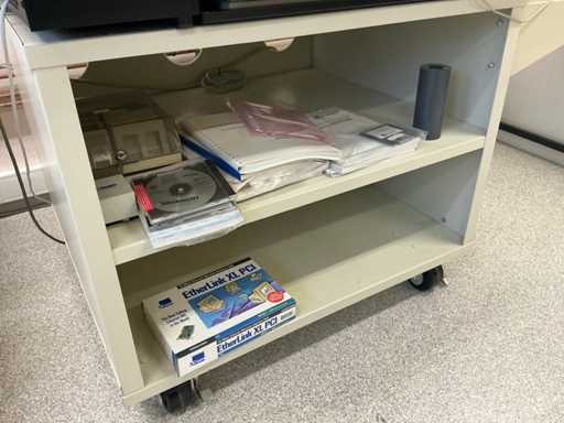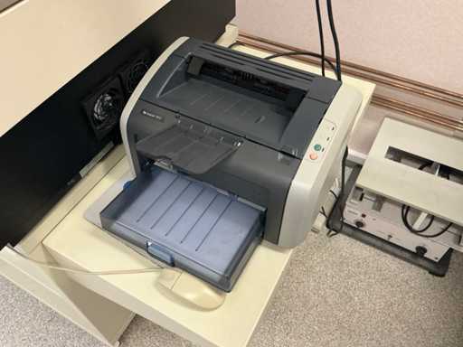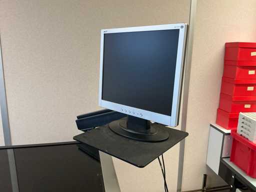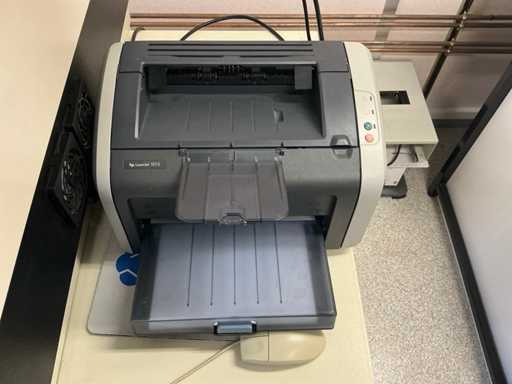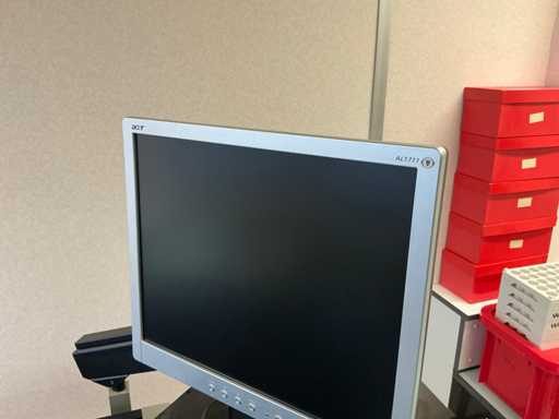 Met documentatie, Acer AL1711 monitor, software, Hp LaserJet 1015 printer en meubels.