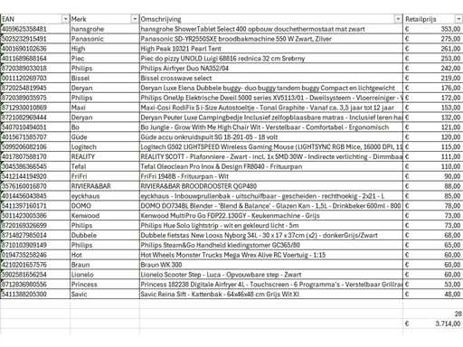 Dit betreft een partij A-merk retourgoederen van een grote online retailer. De partij bestaat uit diverse productcategorieën. Aantal stuks: 28. Retailwaarde: €3714,- Ongecontroleerd: werking onbekend (mix van werkend, incompleet, beschadigd, te gebruiken voor onderdelen). Kom op de kijkdag om te om zo een goed beeld te krijgen van de reden van retour. Zie foto's voor lijst met inhoud.
