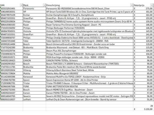 Dit betreft een partij A-merk retourgoederen van een grote online retailer. De partij bestaat uit diverse productcategorieën. Aantal stuks: 29. Retailwaarde: €3155,- Ongecontroleerd: werking onbekend (mix van