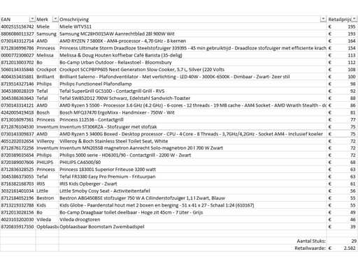 Dit betreft een partij A-merk retourgoederen van een grote online retailer. De partij bestaat uit diverse productcategorieën. Aantal stuks: 29. Retailwaarde: €2582,- Ongecontroleerd: werking onbekend (mix van