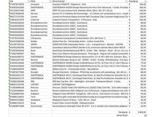 Dit betreft een partij A-merk retourgoederen van een grote online retailer. De partij bestaat uit diverse productcategorieën. Aantal stuks: 34. Retailwaarde: €2903,- Ongecontroleerd: werking onbekend (mix van