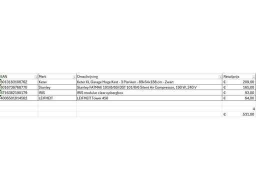 Dit betreft een partij A-merk retourgoederen van een grote online retailer. De partij bestaat uit diverse productcategorieën. Aantal stuks: 4. Retailwaarde: €531,- Ongecontroleerd: werking onbekend (mix van