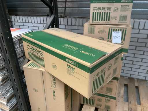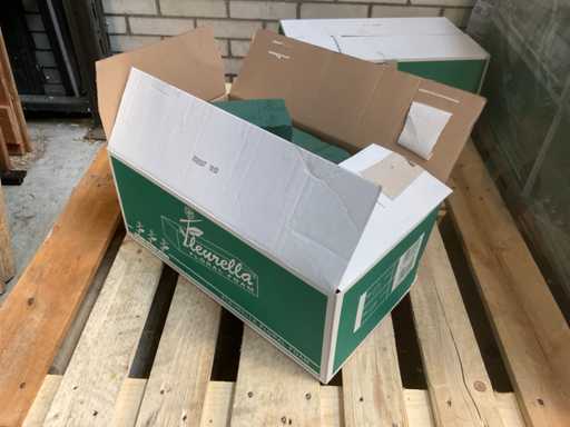 2 pallets oasis, 1 pallet van circa 12 dozen van 35 stuks/doos, en 1 pallet fleurella oasis circa 72 dozen.