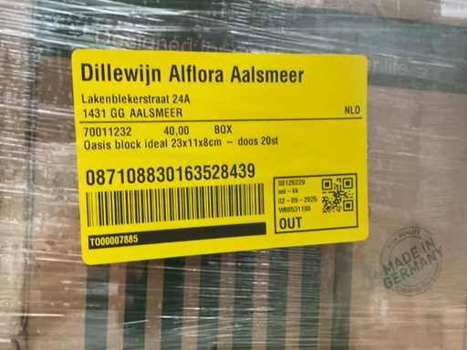 1 pallet oasis, 40 dozen. 20 stukken per doos van 23x11x8cm