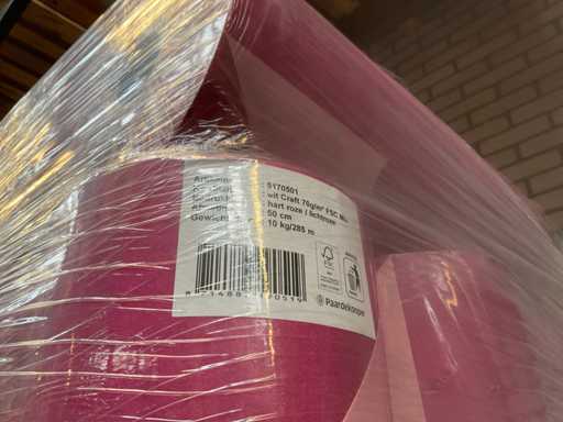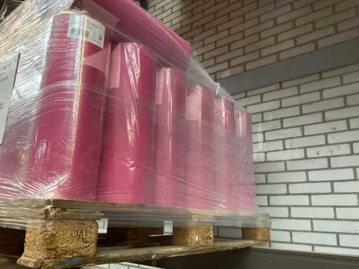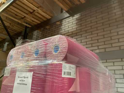 1 pallet met rol papier 70g kraft 50cm hardroze/lichtroze. 28 rollen