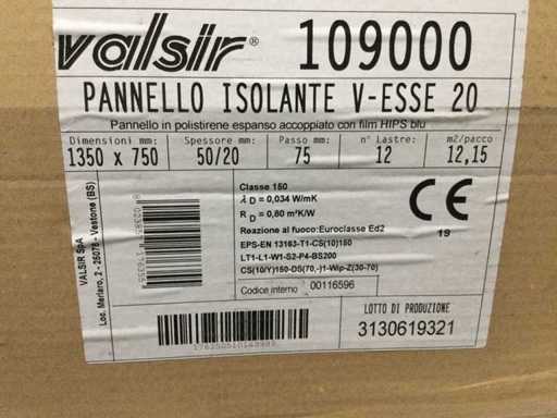 Merk: Valsir Type: V-Esse 20 / EPS150 Afmeting plaat: 1350 × 750 mm Dikte: 20 mm