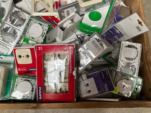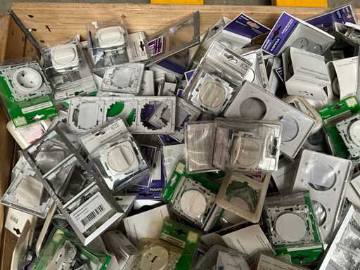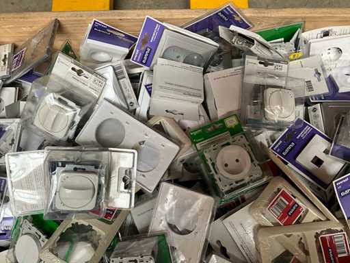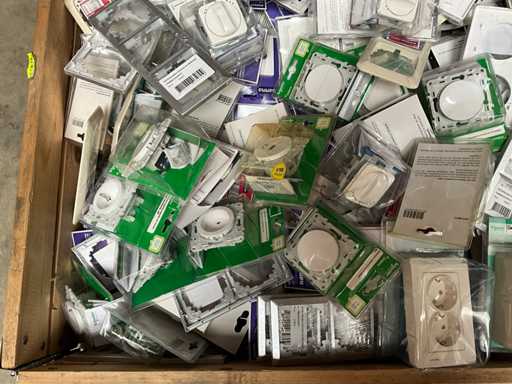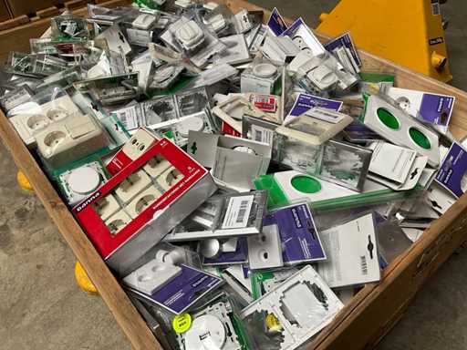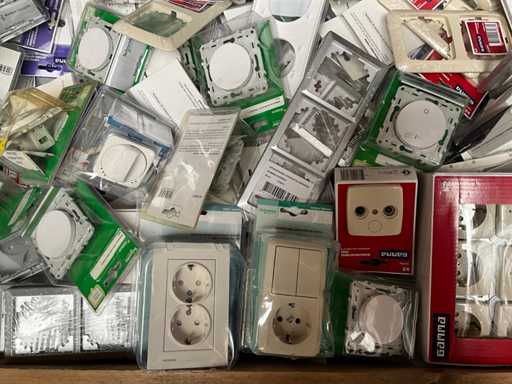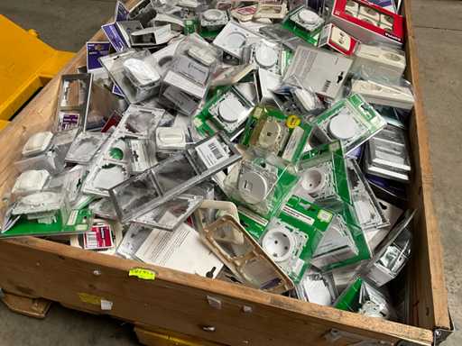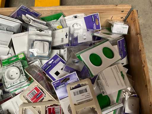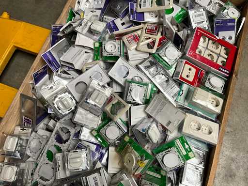 Kavel bestaat uit diverse merken zoals; Busch-Jaeger, Schneider en Berker. Zonder pallet en rand.