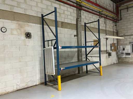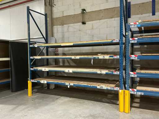 1x stelling 357x110x350 cm v.v. 8x ligger; 1x stelling 327x130x240 cm v.v. 10x ligger; 1x stelling 337x110x350 cm v.v. 4x ligger; 1x stelling 287x80x226 cm v.v. 6x ligger