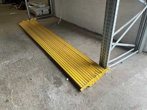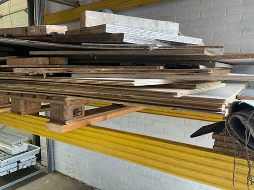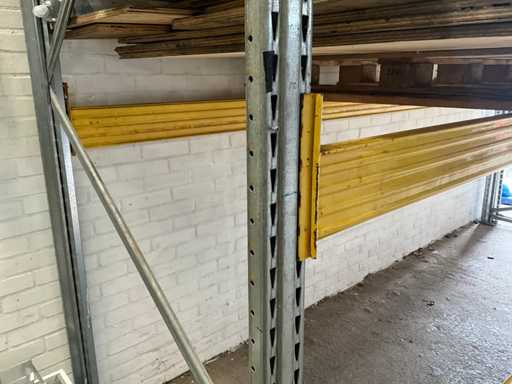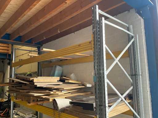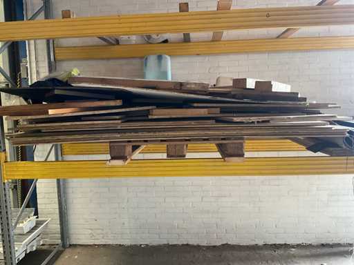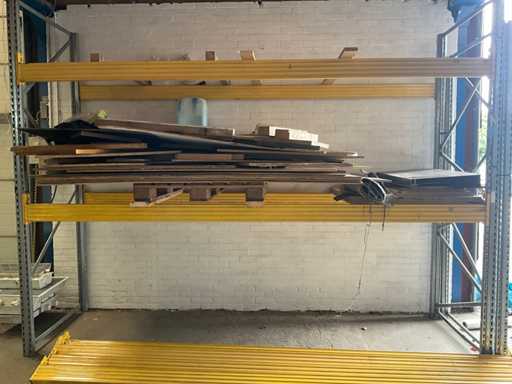 Stelling met pallet plaatwerk. 1 staander is 2650 mm hoog.