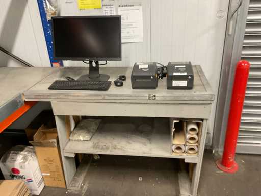 Inclusief monitoren, zebra printers, stoelen, magazijn stelling, plakband, labels, zakhouders etc.