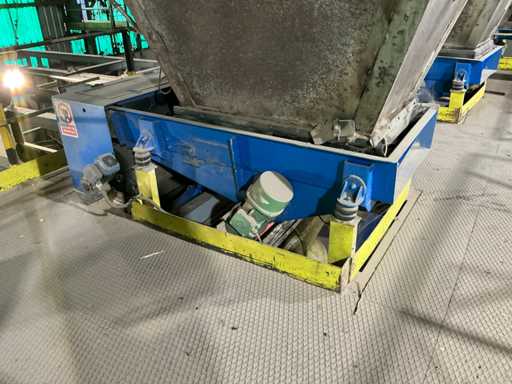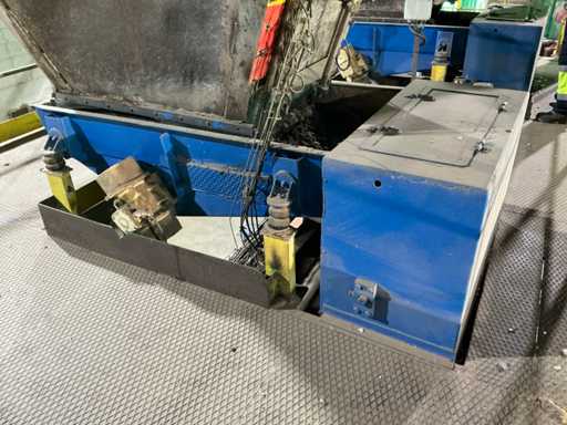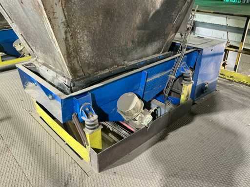 - Bovenste toevoertrechter met vibratiesysteem en magneet voor het scheiden van metalen elementen.
