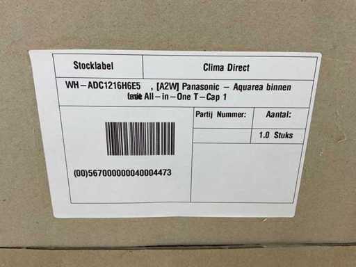 Panasonic WH-ADC1216H6E5 binnenunit zonder installatie. Deze binnenunit behoort tot de Aquarea H-generatie en betreft een lucht-water warmtepomp in bi-bloc uitvoering met geïntegreerde warmwatertank (All-in-One). De unit werkt met R410A koudemiddel en is ontworpen voor toepassing in split warmtepompsystemen in combinatie met een separate buitenunit. De binnenunit is geschikt voor systemen in de 12 tot 16 kW klasse en wordt toegepast voor verwarmen, koelen en warmtapwaterproductie. De geïntegreerde RVS boiler heeft een inhoud van circa 185 liter en is onderhoudsvrij uitgevoerd zonder anode. De unit werkt op 230 V (1-fase) en is voorzien van geïntegreerde hydraulische componenten zoals een circulatiepomp, flowmeter en automatische ontluchting. De maximale wateruitlaattemperatuur bedraagt circa 60°C.