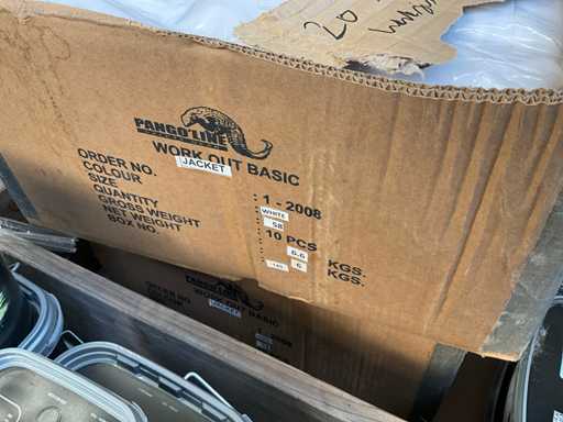2 dozen werkjassen; niet gecontroleerd op maten, aantallen & kleur.