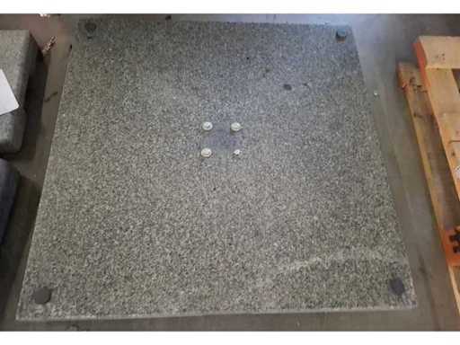 De parasolvoet heeft een formaat van 80 × 80 × 5 cm en is voorzien van schroefgaten op 7,5 cm afstand voor een veilige en eenvoudige montage.