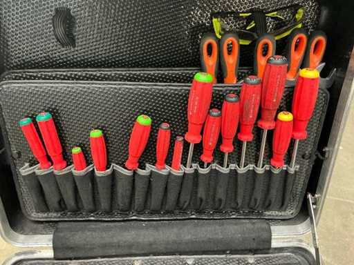 Inhoud: Swisstools schroevendraaiers en inbussleutels, Bahco vijlenset, Knipex tangen en krimptang, Ty-rap kabelbinder, Stahlwille sleutels en boren en tappen
