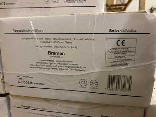 2.88m² per verpakking en er zijn 36 volledige verpakkingen (+1 die open is geweest)