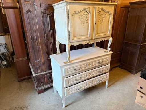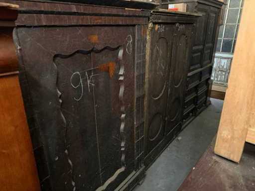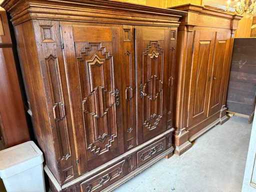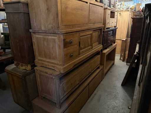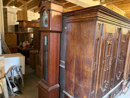 het betreft (antieke) kasten, grenen kasten, ladenkasten, teakhouten tv meubel, Spaanse salon, tafels, dekenkisten en staande klok, totaal circa 50 stuks.