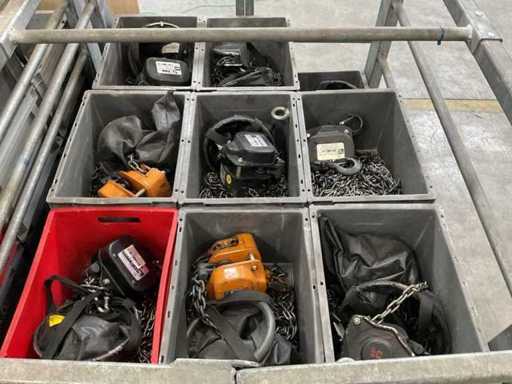 Partij 500kg kettingtakels met kettingzak, 68 stuks