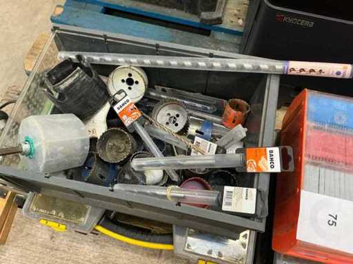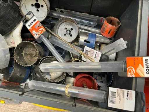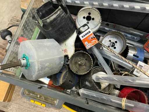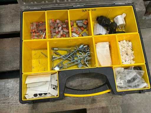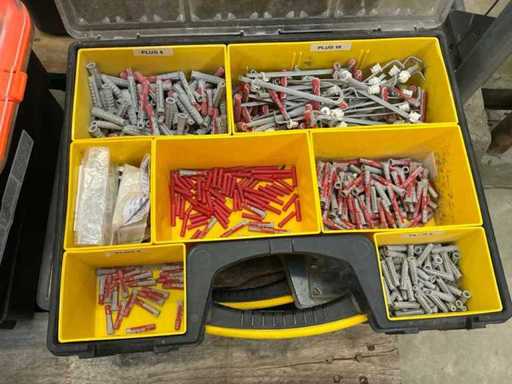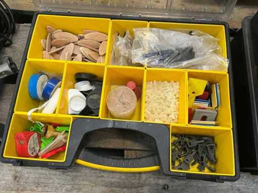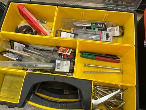 waaronder klokboren, bevestigingsmaterialen, pluggen, … in 5 draagkoffers en 1 magazijnbak
