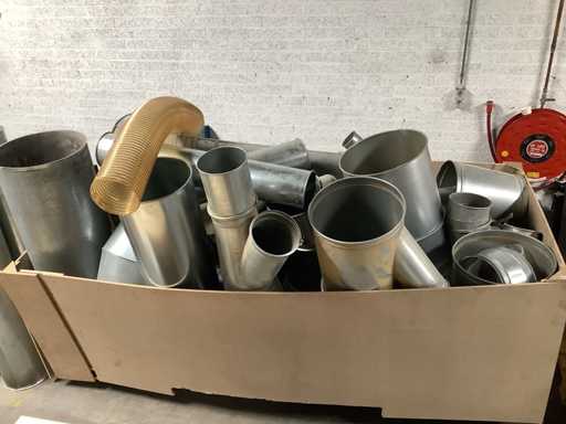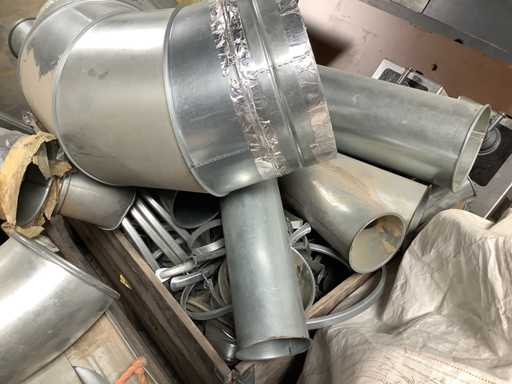 Dit kavel bestaat uit een partij onderdelen voor een afzuiging. Er zijn verschillende maatvoeringen aanwezig. Daarbij zijn er ook een aantal verloop stukken aanwezig