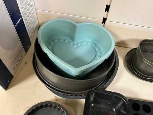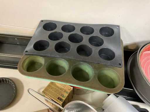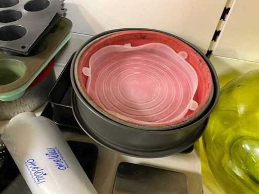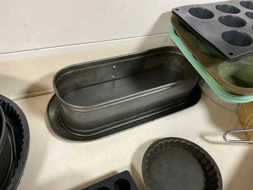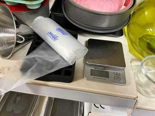 siliconen bakvormen, deegroller, spuitzakken en weegschaal.