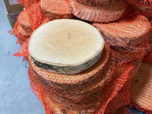 30 zakken, per zak 10 berkenschijven.