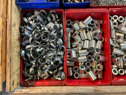 Bestaande uit slangklemmen, moertjes, afstandbussen, koppelstukken, etc