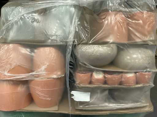 Diverse aantallen en afmetingen waaronder 7 en 25cm, kleuren grijs en groen, op pallet