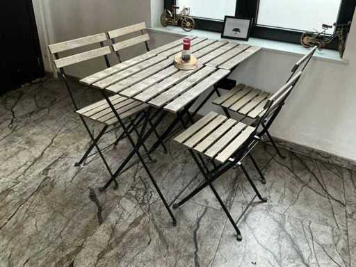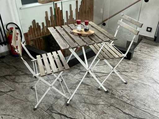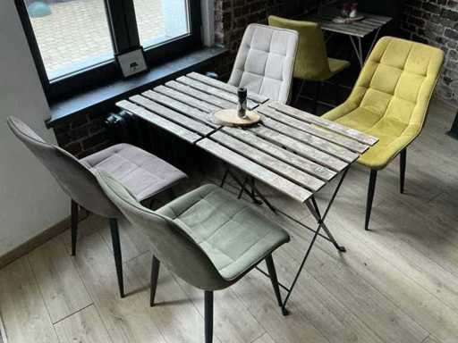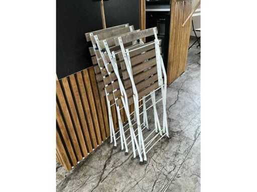 14 diverse metalen opklapbare bistrotafels voorzien van houten bovenblad 55 x 54 x 70cm,