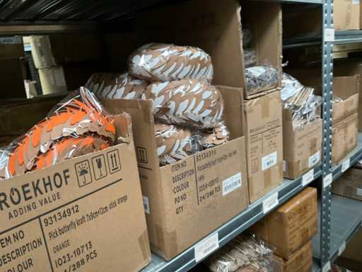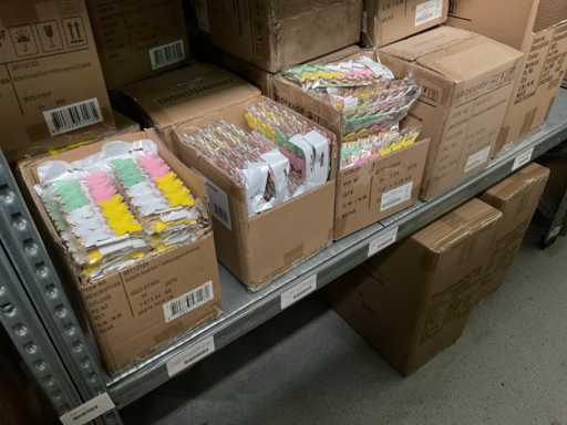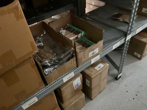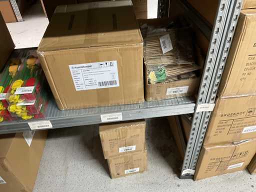 Let op kavels liggen op 1ste verdieping, enkel met trap bereikbaar, goederen met lift max 400 kilo of per pallet met vorkheftruck naar beneden te halen.